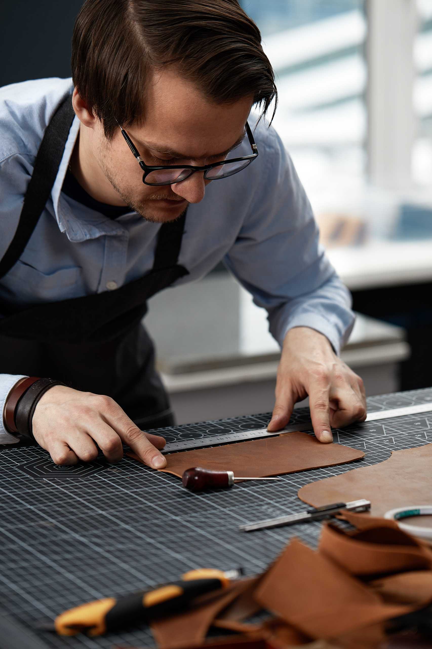 Each movement is carefully executed, reflecting decades of experience and mastery in leather craftsmanship.